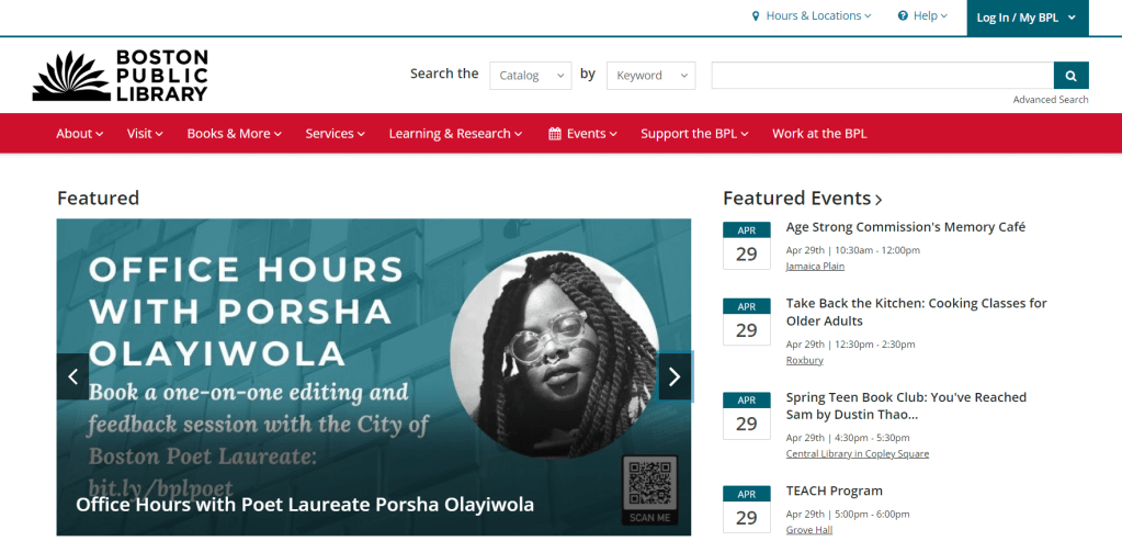 If every Boston Public school library had a homepage on the BPL site, not only would it be easier to use, but I think it would also drive more students to participate in local library activities. The Boston Public library is already so generous and collegial with us school librarians. They are wonderful partners just like Michele! I think it would be a great way for the city to support the schools if our libraries were truly integrated.